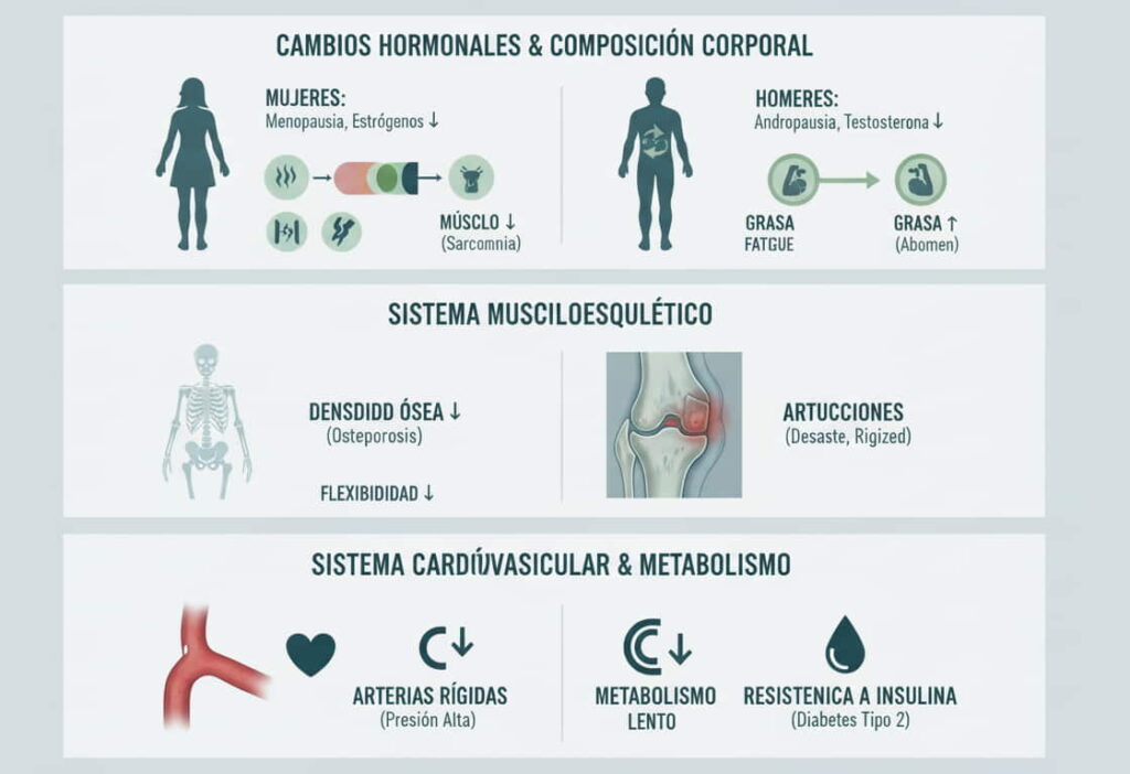 No se trata solo de envejecimiento, sino de adaptación. Con el tiempo, si no lo contrarrestamos con actividad consciente, el cuerpo tiende a:
